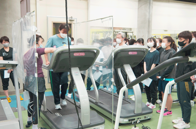通常の講義の中でも、コロナ感染防止対策のポイントを入れながら「健康スポーツ実技」を行っています。